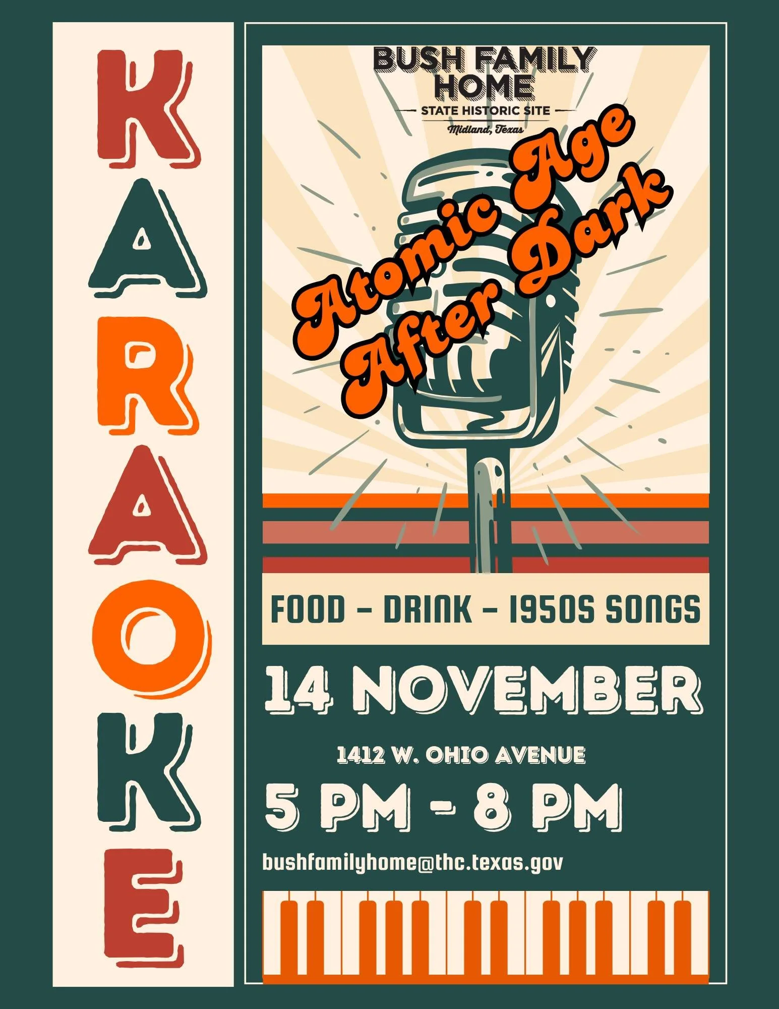 Are you brave enough to do some singing in front of the crowds? Well, you're in luck! As part of our Atomic Age After Dark series, we'll be hosting a karaoke night filled with 1950s songs! There will be food and drink and a lot of fun! Come on out and join us for a great night!