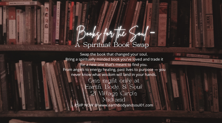 Gather with kindred spirits for a cozy evening of inspiration and discovery. Bring a spiritually minded book you’ve loved — one that’s touched your heart, shifted your perspective, or guided you along your path — and let it find a new home with someone ready to receive its magic.