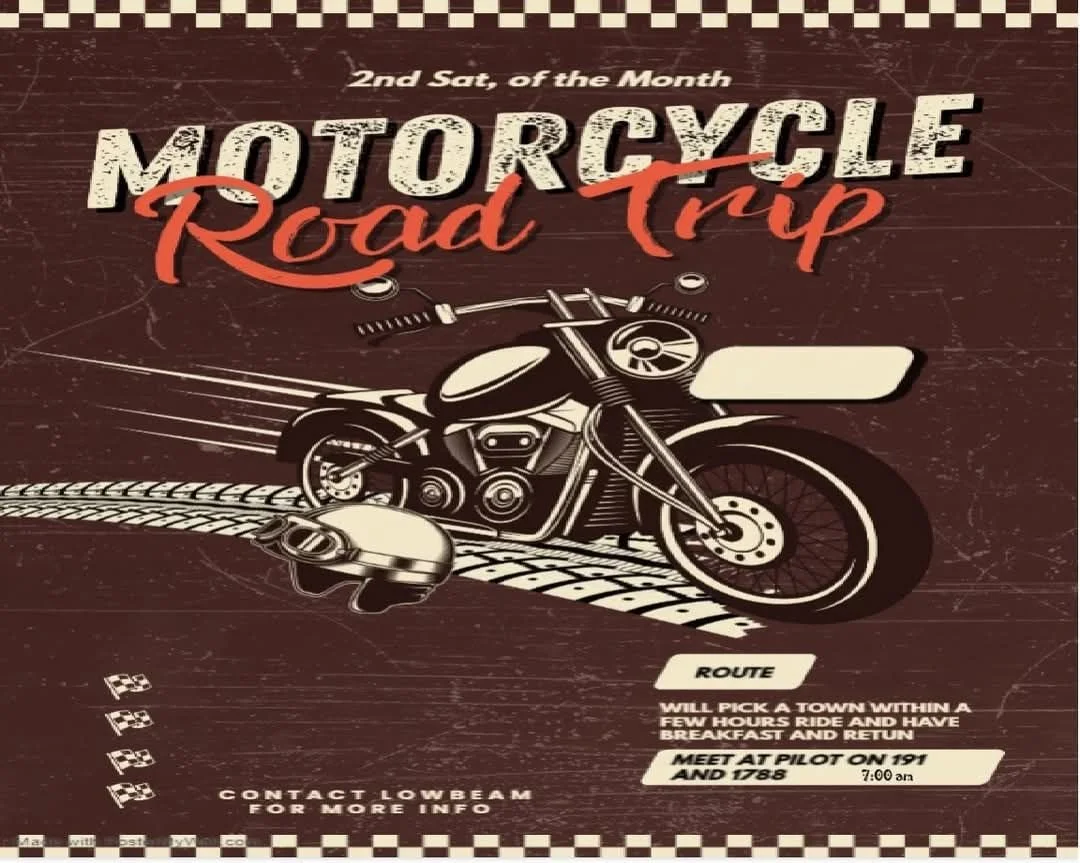 Breakfast Ride Saturday, October 11, 2025 7:00 AM 12:00 PM Hwy 191 & Fm 1788 191 Farm to Market Road 1788 Seminole, TX, 79360 United States (map) Google Calendar ICS meet then ride to have breakfast Learn more