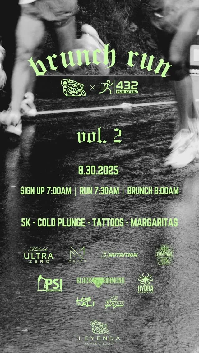 Brunch Run Vol. 2 has been set! We will see you bright and early on Saturday August 30th! 5k, brunch, djs, cold plunge, tattoos and margaritas are on the menu! Shirts for everyone while supplies last!