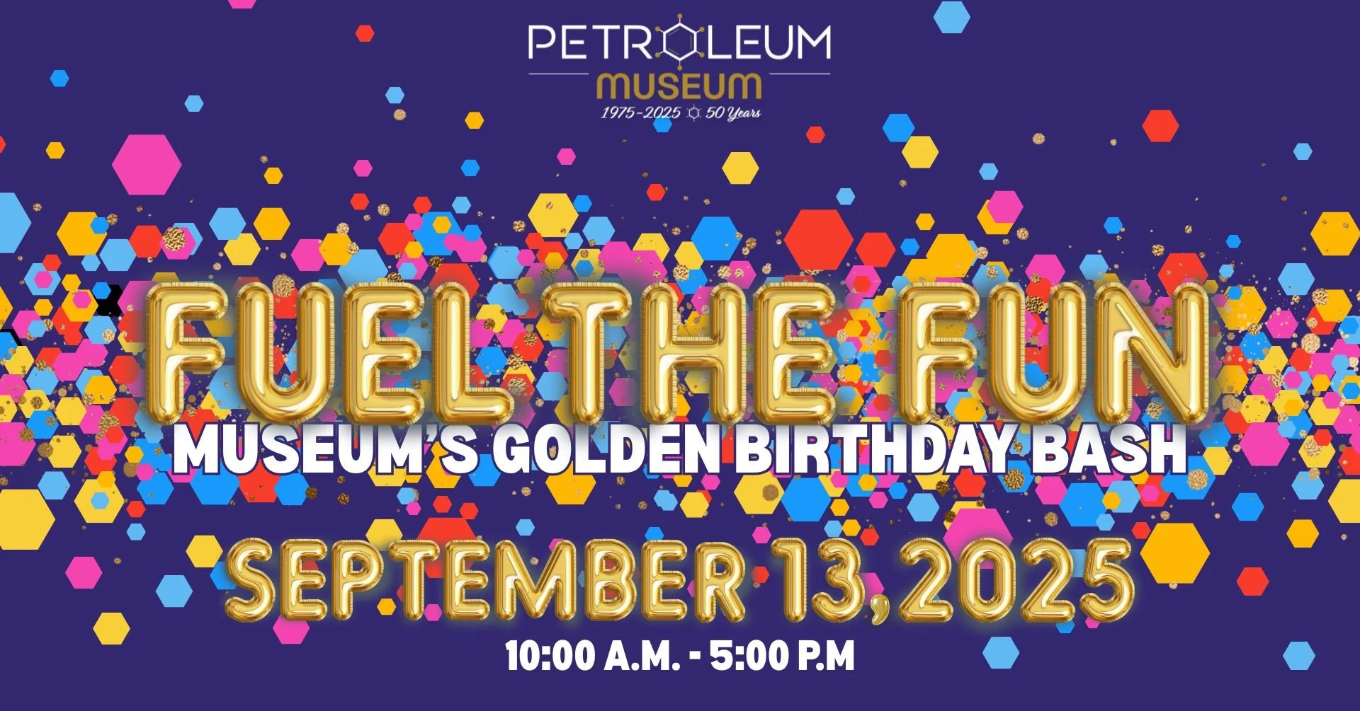 Celebrate 50 years with us at the Petroleum Museum’s Golden Birthday Bash! Enjoy free admission, hands-on fun, interactive exhibits, community partners, and delicious bites from Greggors Pizza, Crisp Bread Witch, and Sealy Wheels.