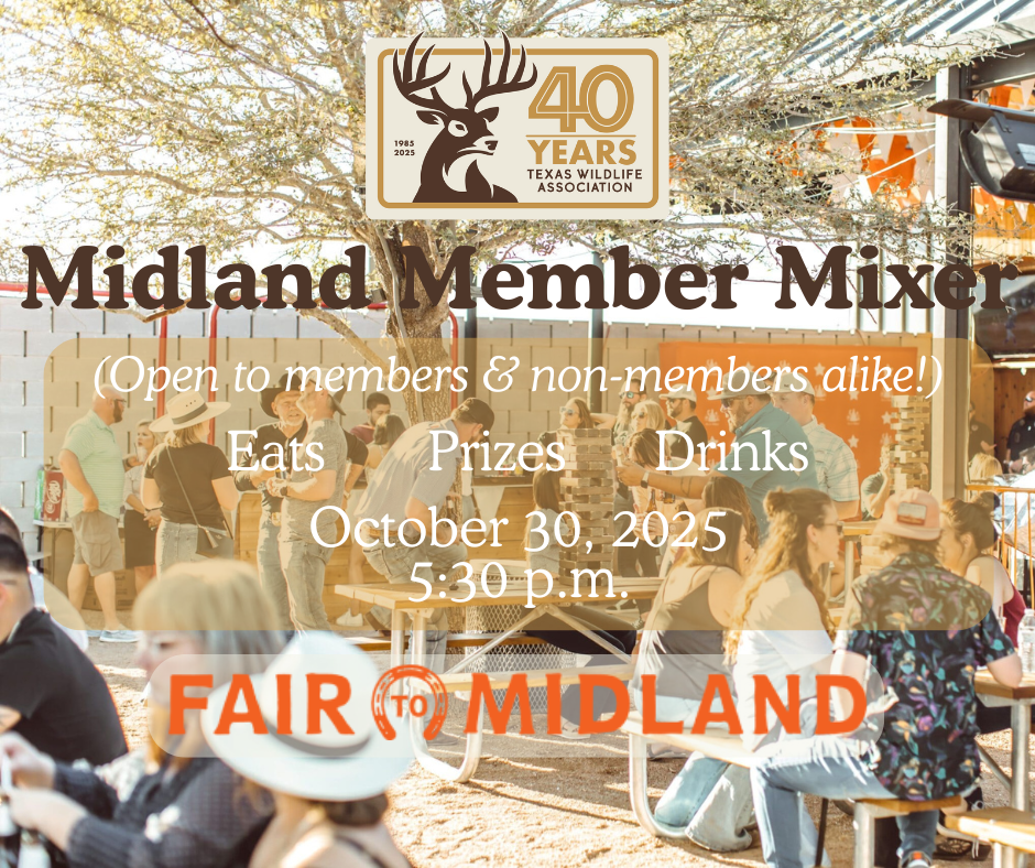Happy Hour with Texas Wildlife Association. Drink, prizes, apps. For members and non-members. Come learn about TWA and everything we do around the state!