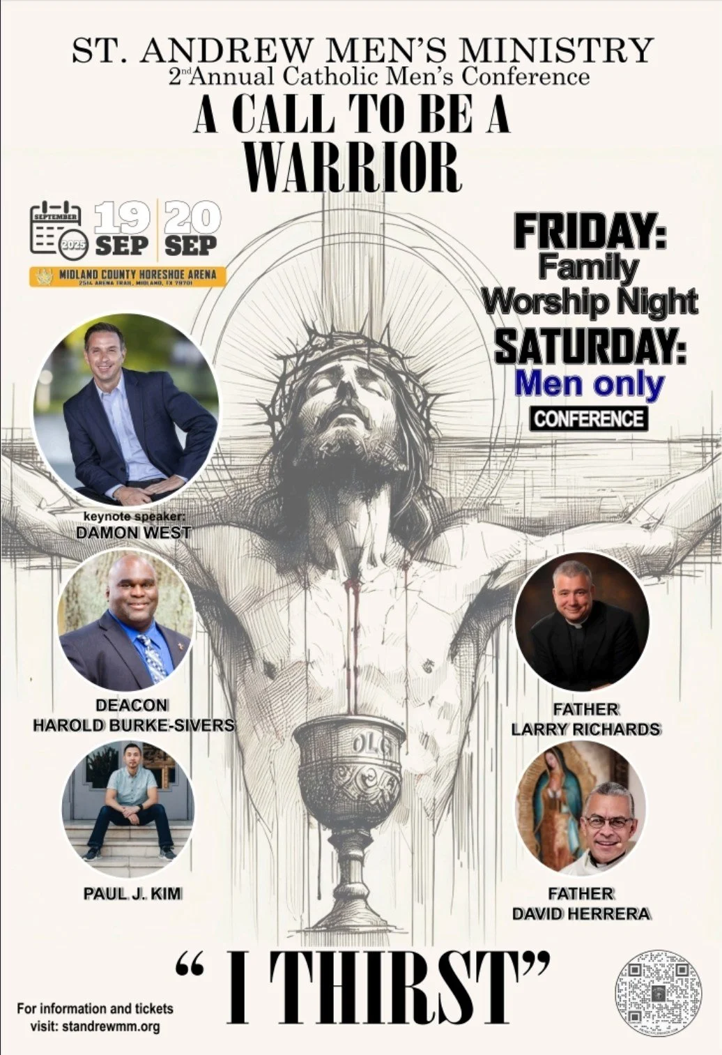 St Andrew Men's Conference Friday, September 19, 2025 6:00 PM 9:00 PM Horseshoe Arena 2514 Arena Trail Midland, TX, 79701 United States (map) Google Calendar ICS Save the date for our 2nd Annual Men's conference. Tickets go on sale July7th. Learn more