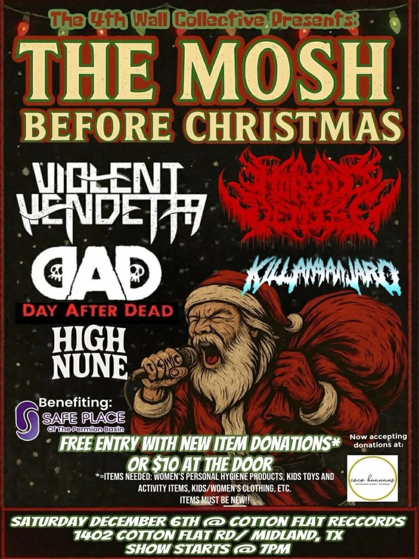 Back to All Events The Mosh Saturday, December 6, 2025 7:00 PM 11:00 PM Cotton Flat Records 1402 Cotton Flat Road Midland, TX, 79701 United States (map) Google Calendar ICS The next barnstormer at the Flat. Be there. Learn more